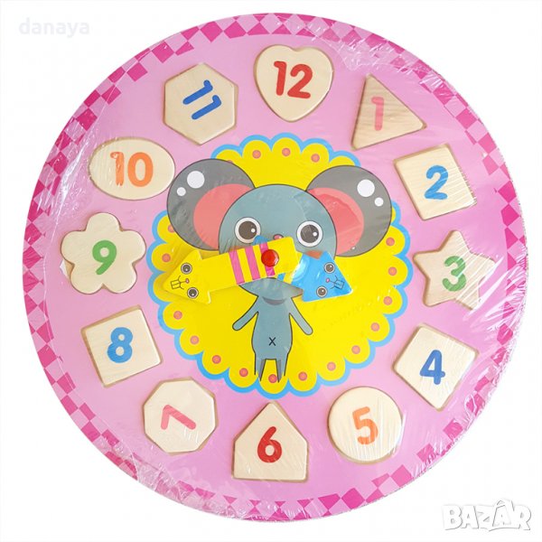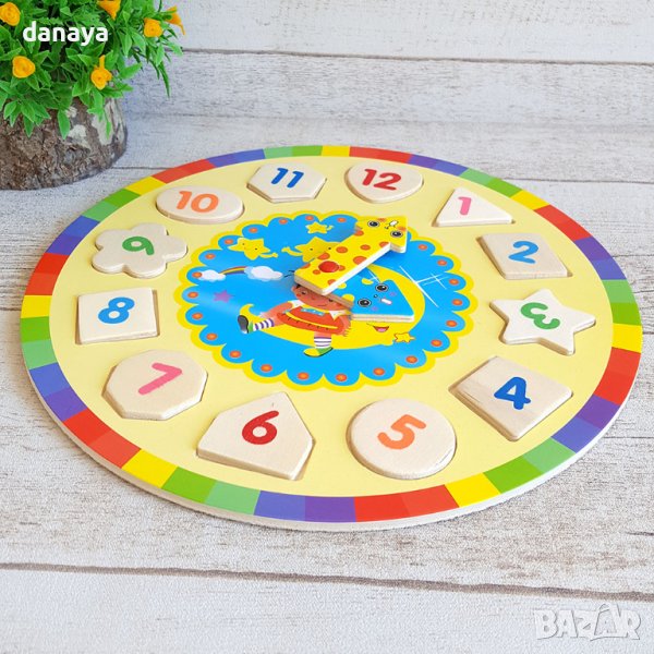 2961 Детски дървен часовник пъзел играчка