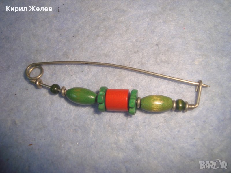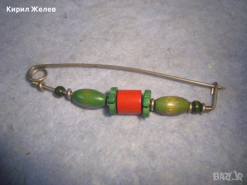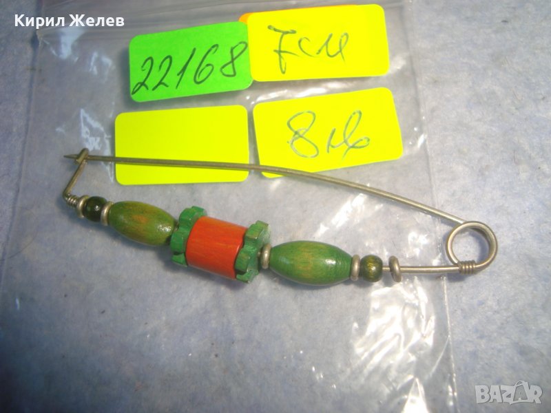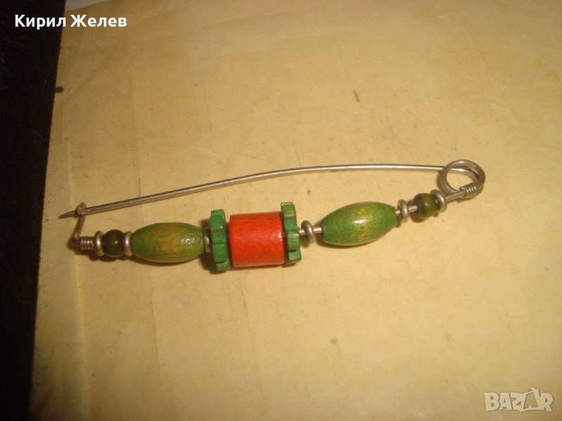МНОГО КРАСИВА ХИПАРСКИ ГРЪНЧ СТИЛ ХЕНД-МЕЙД ФЕШЪН ФИБУЛА АРТ ИГЛА с ЕЛЕМЕНТИ от ДЪРВО 22168