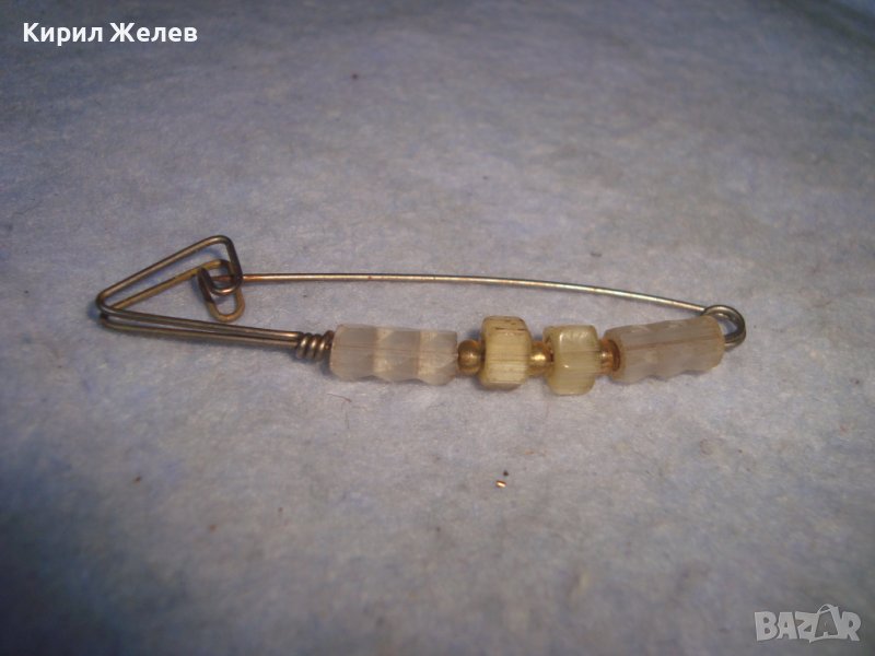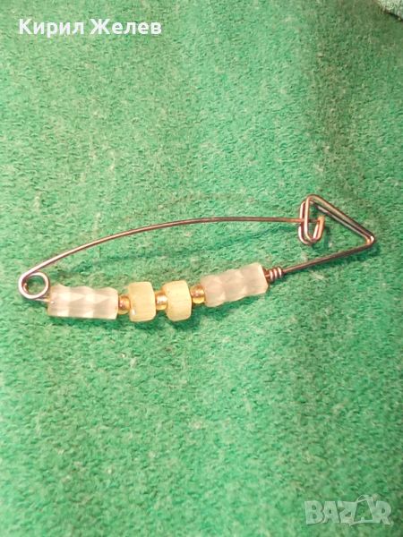 СТАРИННА АР НУВО СРЕБРИСТА ФИБУЛА ЯРТ ИГЛА с ОПУШЕН ПЛАНИНСКИ КРИСТАЛ и МЪНИСТА 8562