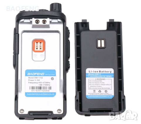 UHF радиостанцията Baofeng DM-1702 е изцяло нов модел двулентова DMR радиостанция с голям цветен LCD екран. Има дълга комуникационна честота UHF 400-470Mhz и VHF 136-174 MHz и е съвместим с Mototrbo (Motorola Hytera и други).