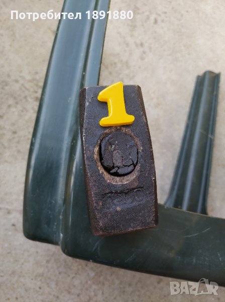№7 Използван чук с маркировки от двете страни от едната страна сърце,кръст и котва а от другата страна едно и една втора - донесен от Англия с дължина 36 см. и общо тегло 1,630 кг. - цена 110 лева.
