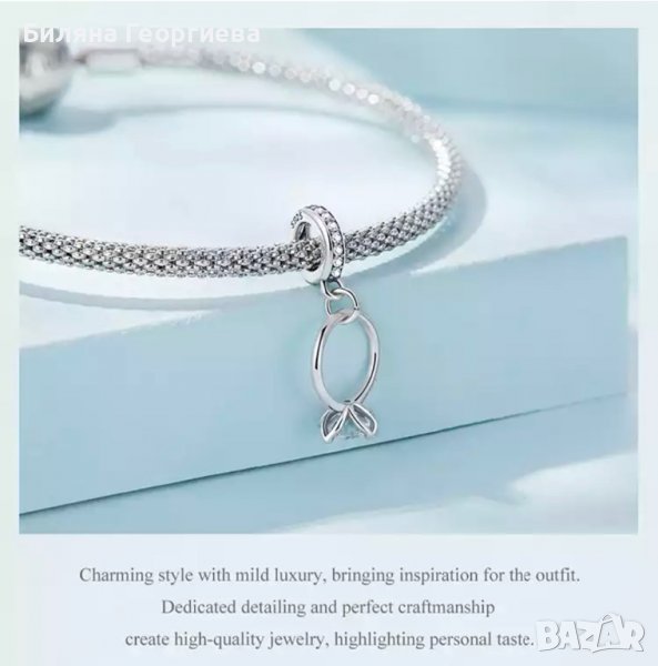 Сребърен талисман за гривна Пандора Годежен пръстен Модел 060 → Обява 37635349