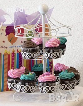 метална стойка поставка сърцевидни кошнички Карусел за 12 бр мъфини мъфина къпкейк кексчета → Обява 37636254