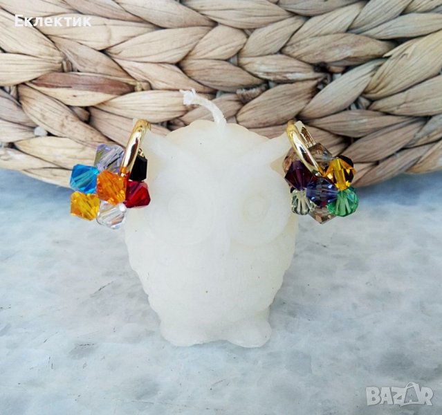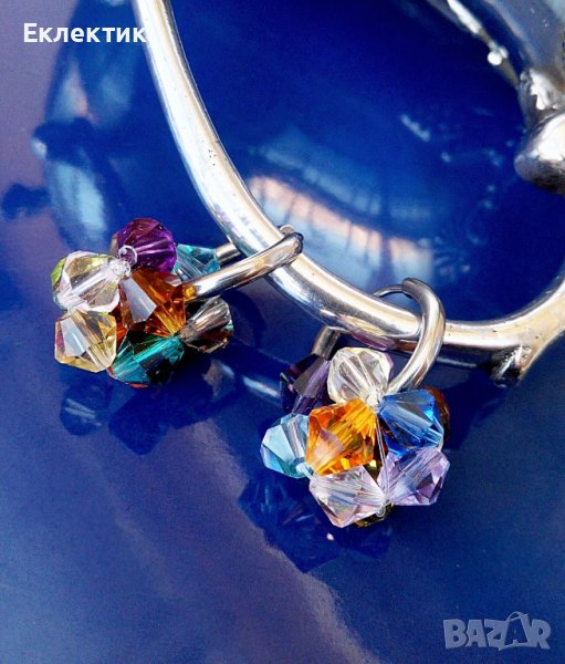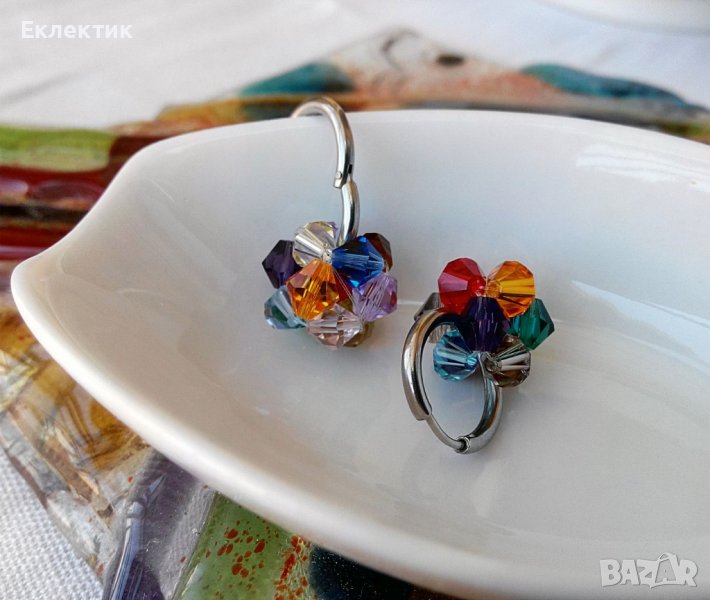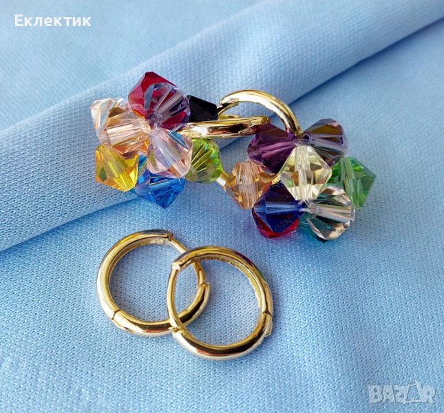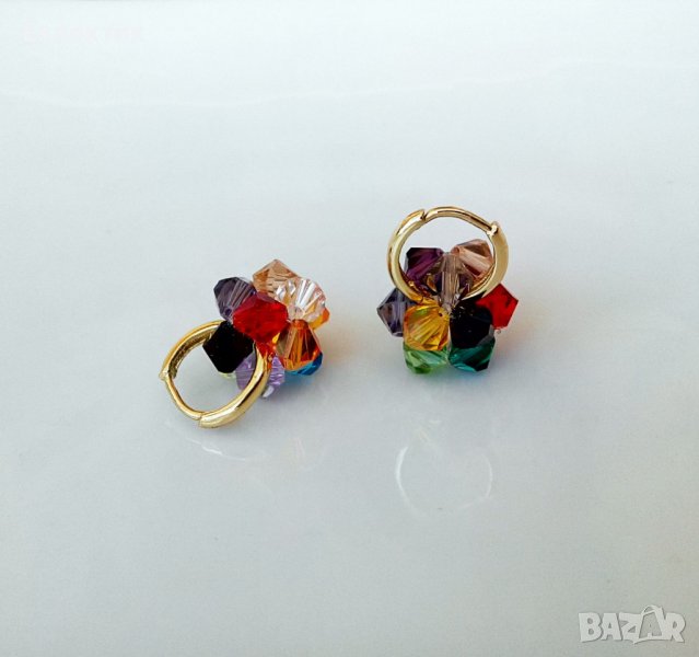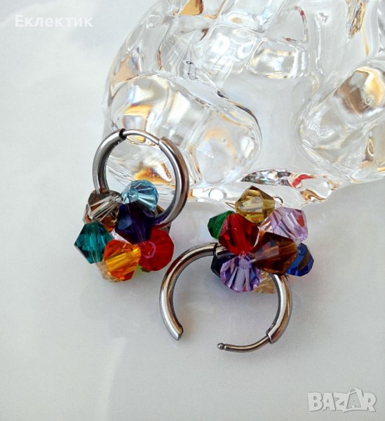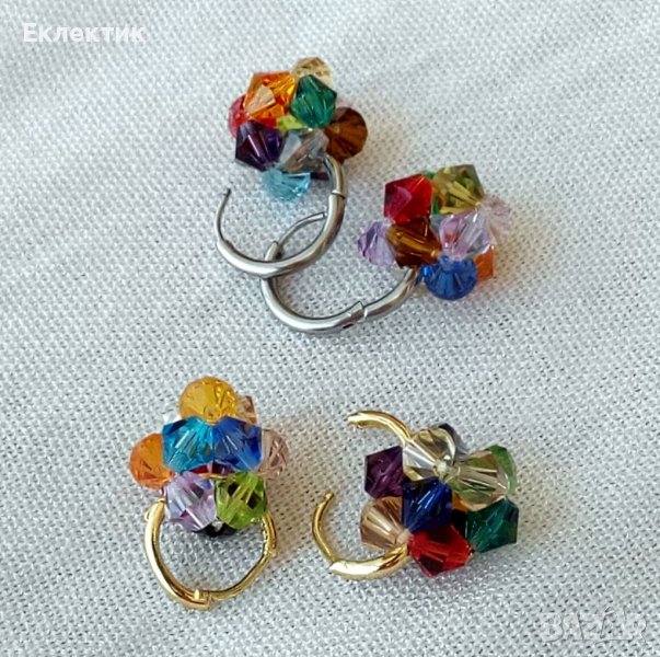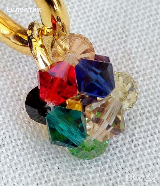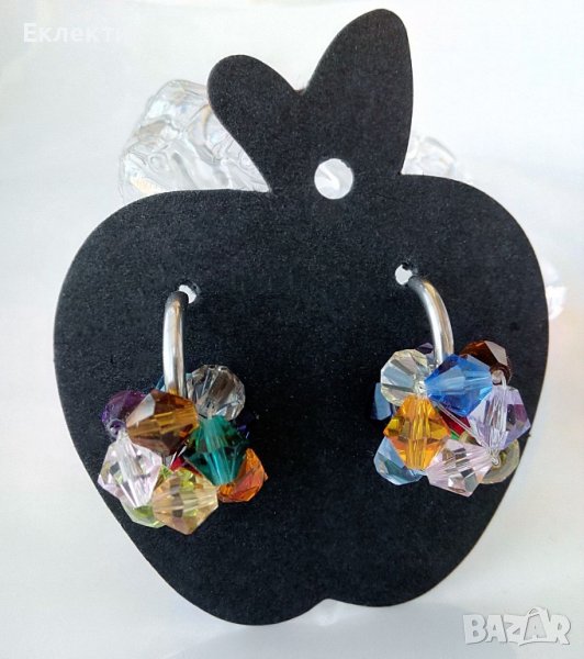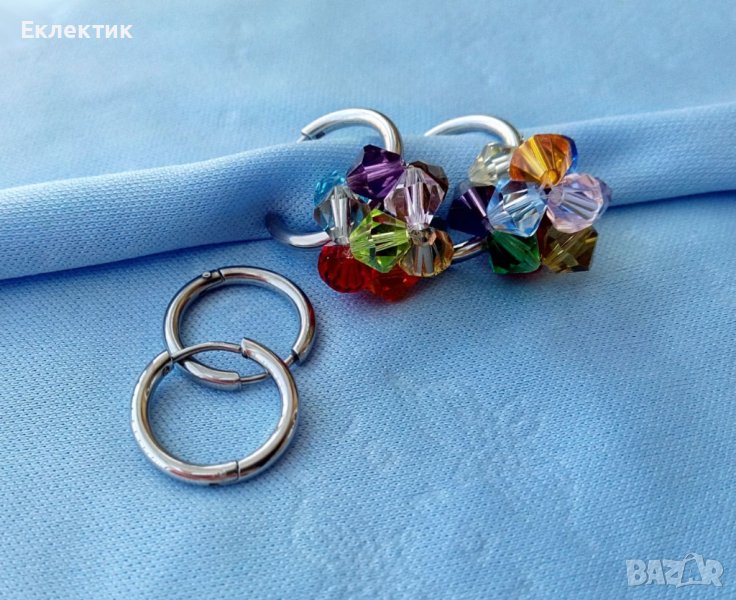 Тези обечки могат да се носят на всяка част на ухото със или без мънистото, тъй като то се изплъзва лесно. Между другото, това мънисто може да се носи отделно на верижка като висулка. Изработено е от разноцветни 6 мм биконуси от кристално стъкло и е с размер ок. 1,5 см.