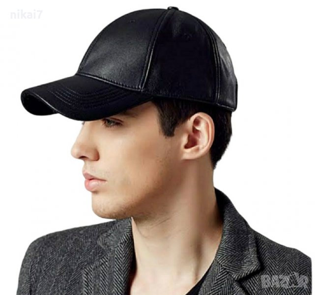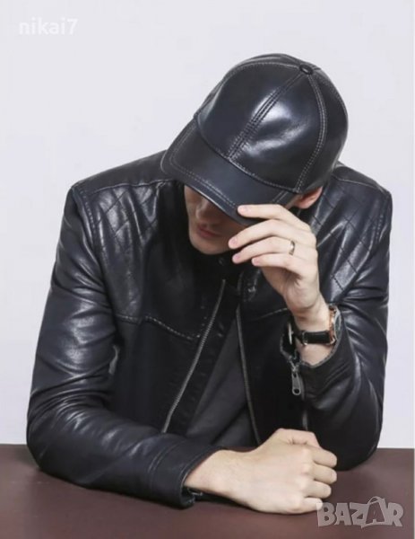 мъжка шапка с твърда козирка естествена кожа мека и приятна на допир
