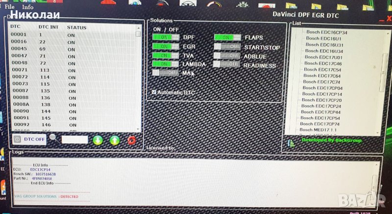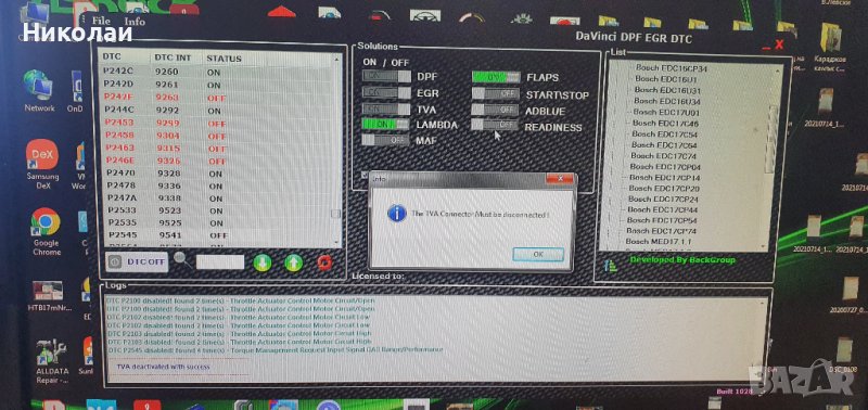 Най новата DAVINCI 1.0.28 програма за премахване на DPF EGR DTC TVA FLAPS MAF ADBLUE LAMBDA ON/OFF .