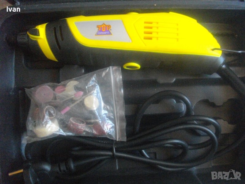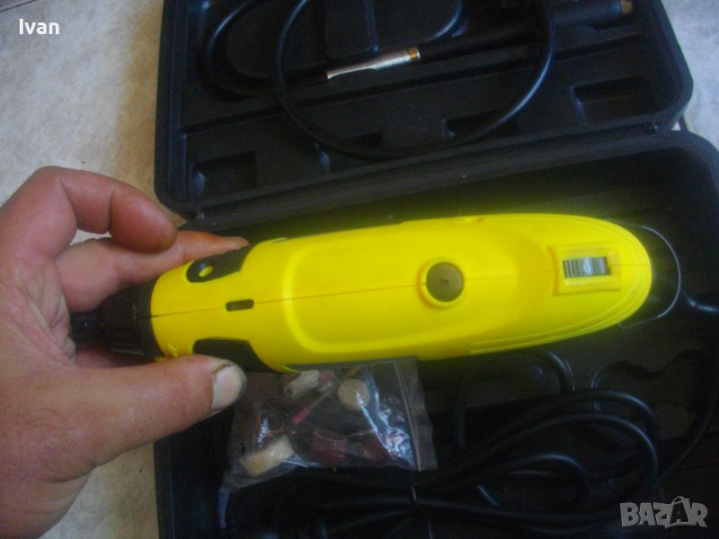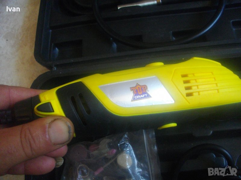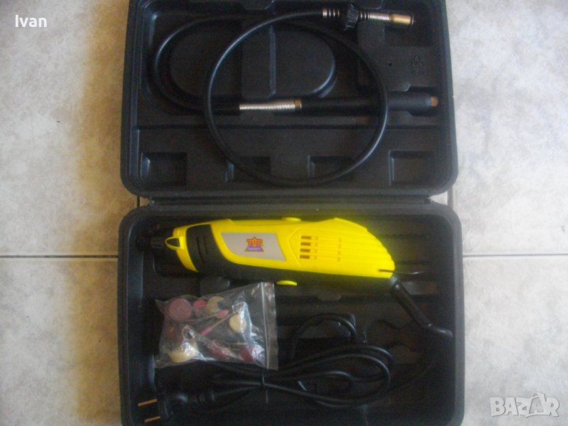НОВА жълта мини дрелка шлифовалка/прав шлайф - немски в куфар комплект с аксесоари и гъвкав вал/рамо - 170 вата-Топ Крафт - цена 159 лв.