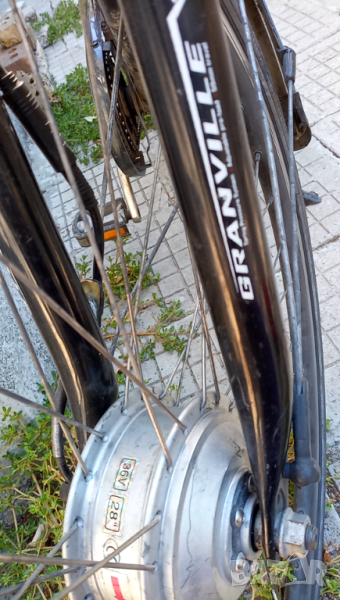 595 лв - GRANVILLE германски велосипед. Ултрамощна батерия 12 AHр 36 волта, ДЪРЖИ ГОЛЯМ ПРОБЕГ. Има 21 механични скорости и 5 електрически, тоест 105 комбинации да избирате доколко Вие да го движите, доколко моторът да участва. Моторът се за задейства с въртене на педалите. При 5-6-7 скорост и 4-5 електрическа направо хвърчи с голяма скорост. Има си светлинен индикатор за ниво на батерията, дисплей с лампички, фар и стоп. При желание може да се добавят двойка странични чанти отстрани на багажника, много са обемни и полезни, за пазаруване или туризъм, свалят се с 1 движение