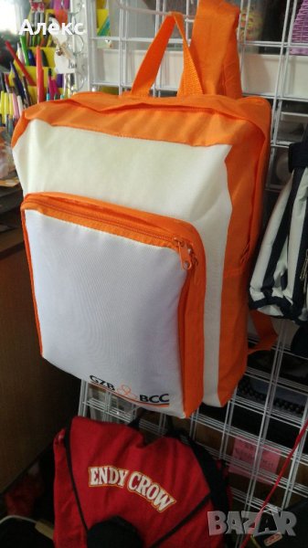 Раница с вграден дъждобран в цвят бяло и оранжево -20лв.