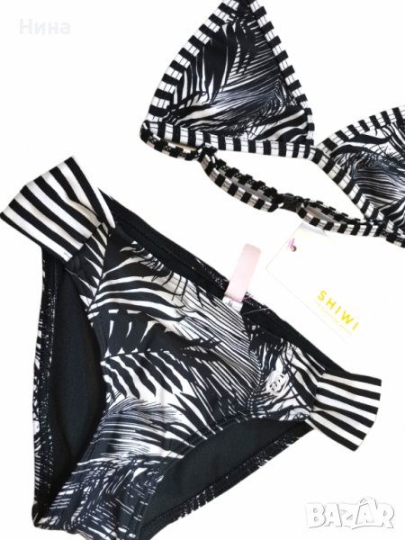 Марков детски бански Shiwi в черно - бялата гама 🌞🌊 Красив, стилен, от 2 части 🔝 Размер 128 см 🛍️ За още моделчета разгледайте и останалите обяви в профила ми.