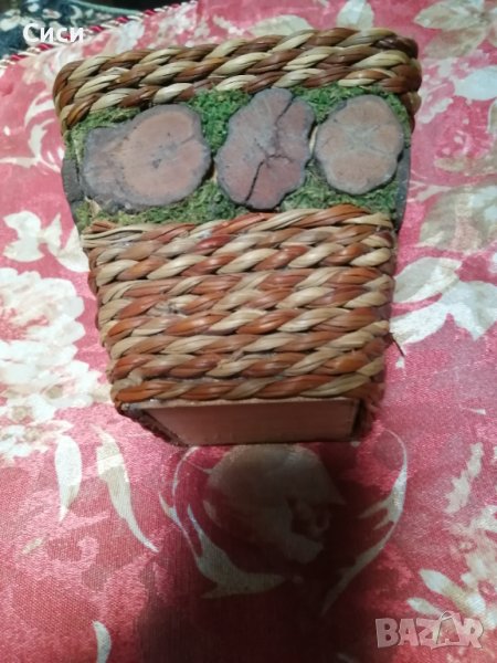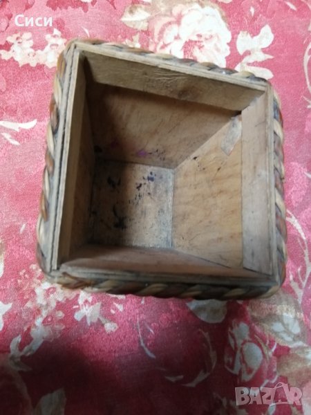 Размер дъно 7.3 / 7.3 см. Височина 10.5 см. Горна част отвор 11.2 / 11.2 см. Вътрешна стена 9/9 см. Ползвана е за химикали моливи и др. Има следи от химикал фулмастер и др. Запазена