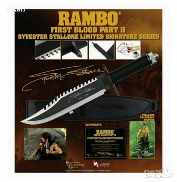 Rambo+автограф Силвесът Сталоун Първа кръв част II +кожен калъф