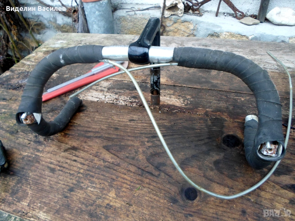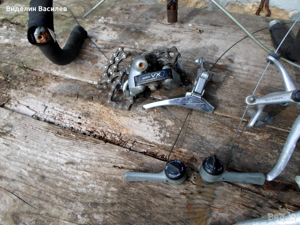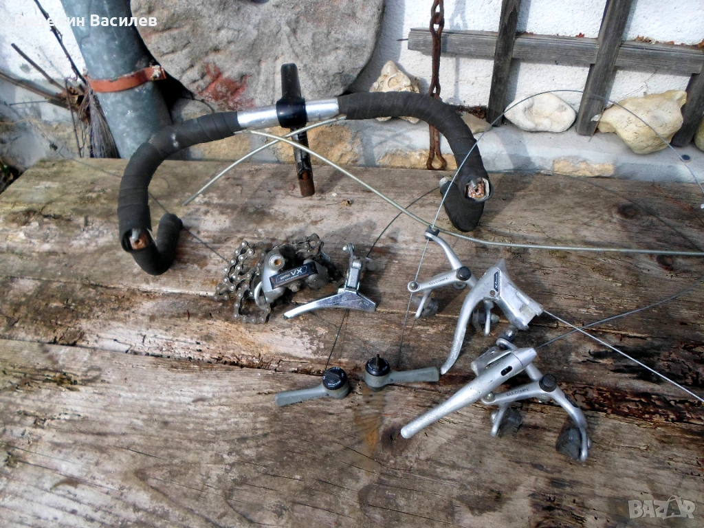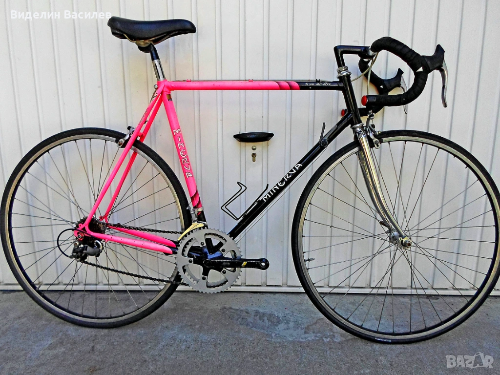 "Minerva" белгийски класически велосипед 57 вертикал/56 хоризонтал.Рамка с вилка продадени! Скорости Suntour,DiaCompe спирачки ,капли клинчери.Курбели Miche/50"34/35 евро,капли комплект 29 евро/за профилактика/,ITM кормило с лапа 25 евро .Комплект скорости 29 евро, комплект спирачки 29 евро.