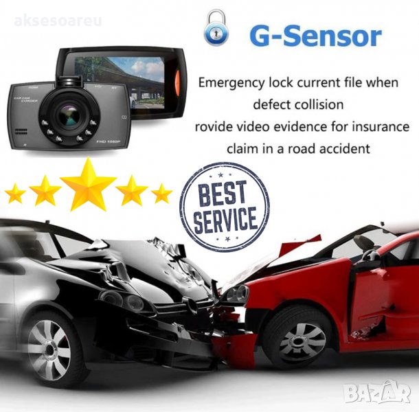 Вграден G-сензор -когато се случи автомобилна катастрофа, автоматично се запазва и няма да се