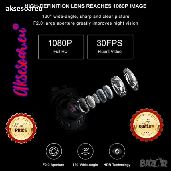 1080p Full HD DVR Рекордер Автоматичен изглед Car Cam за автомобили Нощно
