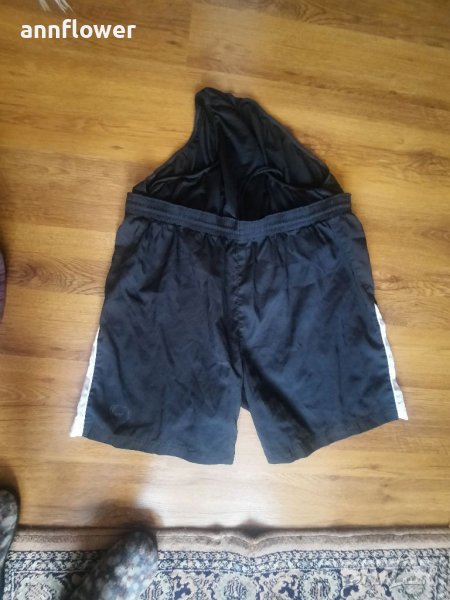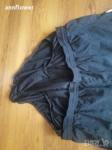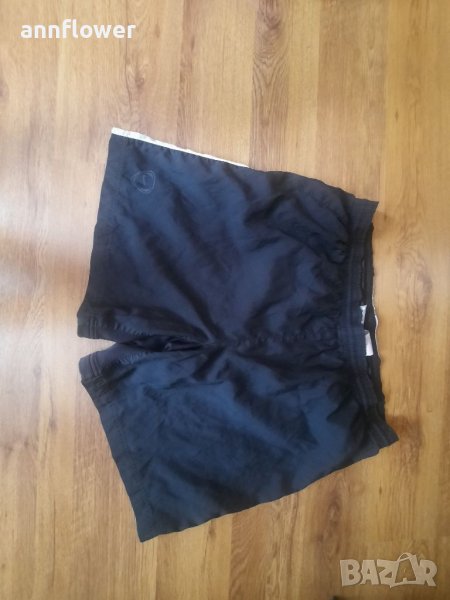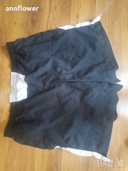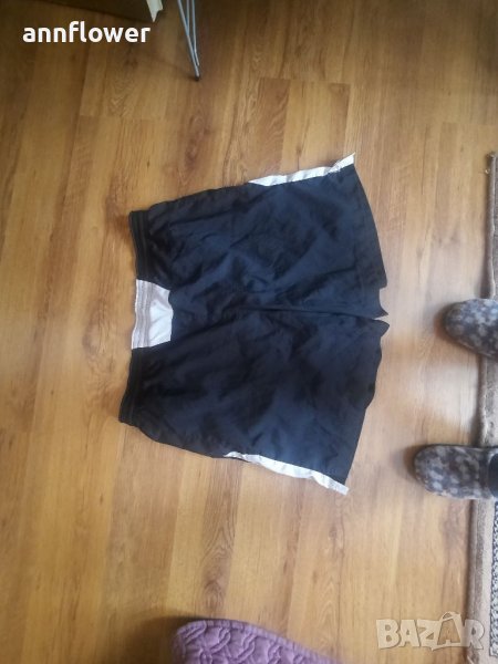 Шортите са в отлично състояние. Цвят черен съсбяло. Размер XL. Имат бандаж и връзка. Дължина 46см, ширина на ластика едностранно измерен без да разтягам 46см, разтяга се до 56см, тоест за талия от 92см до 112см.