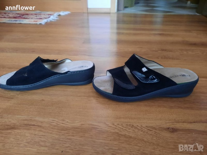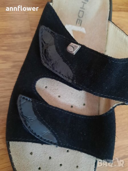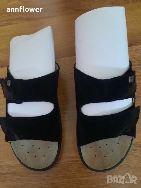 Чехлите са нови и оригинални от Германия. Изработени от естествена кожа велур и лак. С анатомична дишаща стелка. Размер 37, стелка измерена от край до край 24,5см. Каишките са с велкро лепенки и се регулират според ширината на ходилото.
