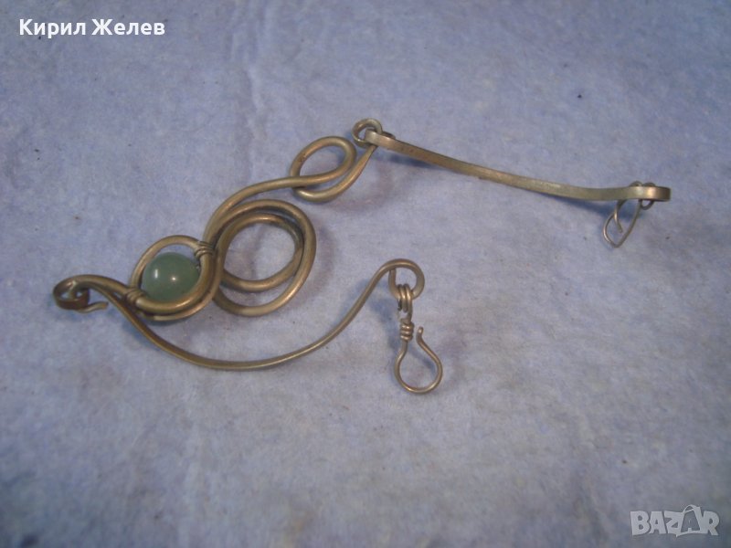 СТАРА МЕЛХИОРЕНА АРТ ГРИВНА с ЮВЕЛИРНО ПОЛИРАН ЗЕЛЕН НЕФРИТ РЪЧНА МАЙСТОРСКА ИЗРАБОТКА 32132