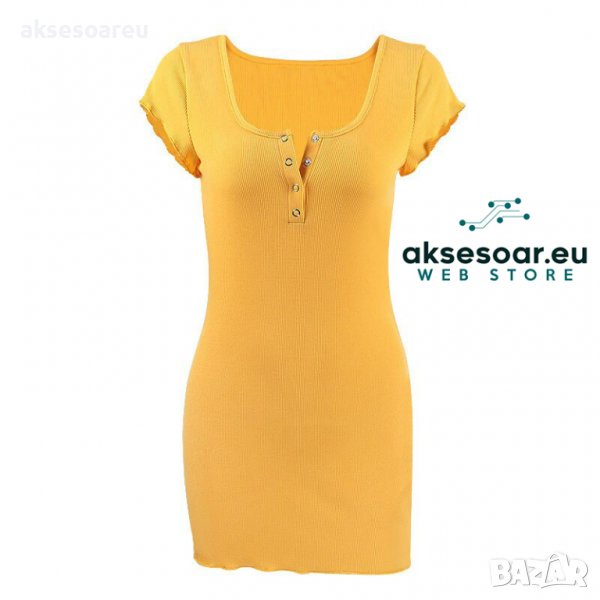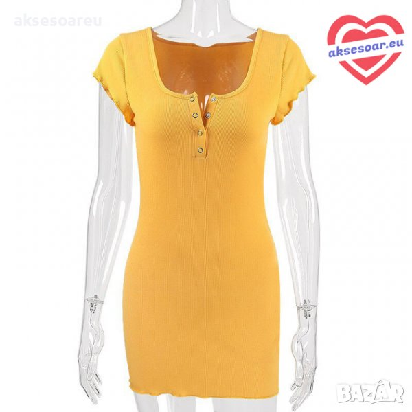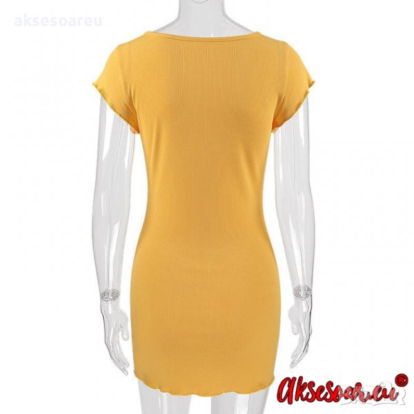 рокличка дрехи облекло деколте къс ръкав жълта мини лятна ежедневна рокля