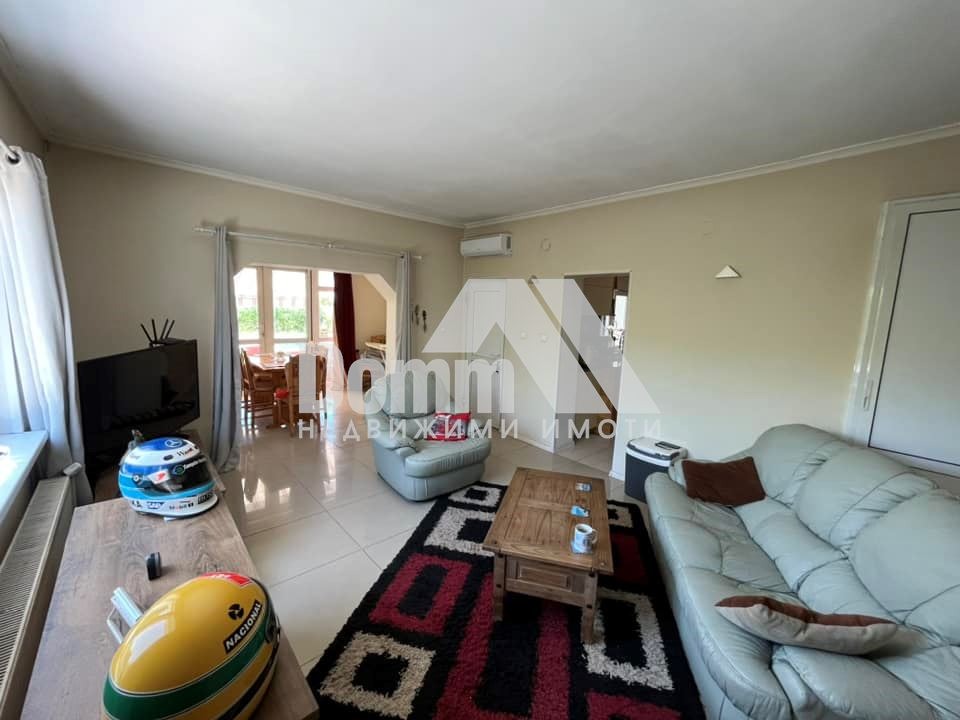 Къщата е на три етажа с площ 145 кв.м и се състои от :просторен хол- 49 кв.м, кухня 12- кв.м., пет спални и три бани с тоалетни.Стаите са напълно обзаведени с мебели от масивно дърво и качествени електроуреди.