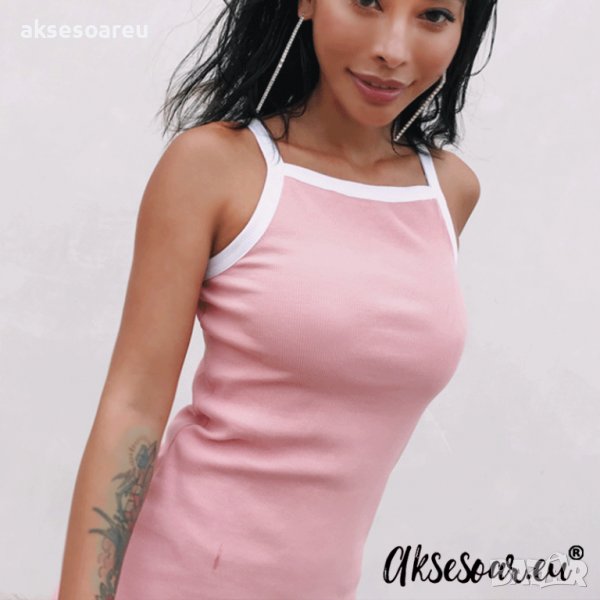 Дамска секси модна стилна красива рокля за жени момичета рокличка дрехи облекло деколте без ръкав еж