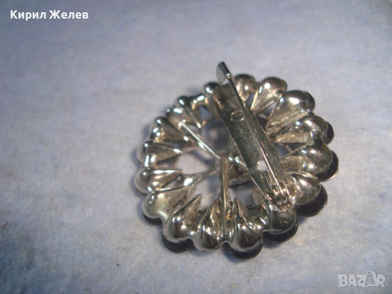 СТАРА ВИНТИДЖ СТИЛ РЕТРО - АРТ СРЕБРИСТА БРОШКА с ФАСЕТИРАН ГРАНАТ 71251