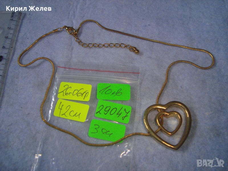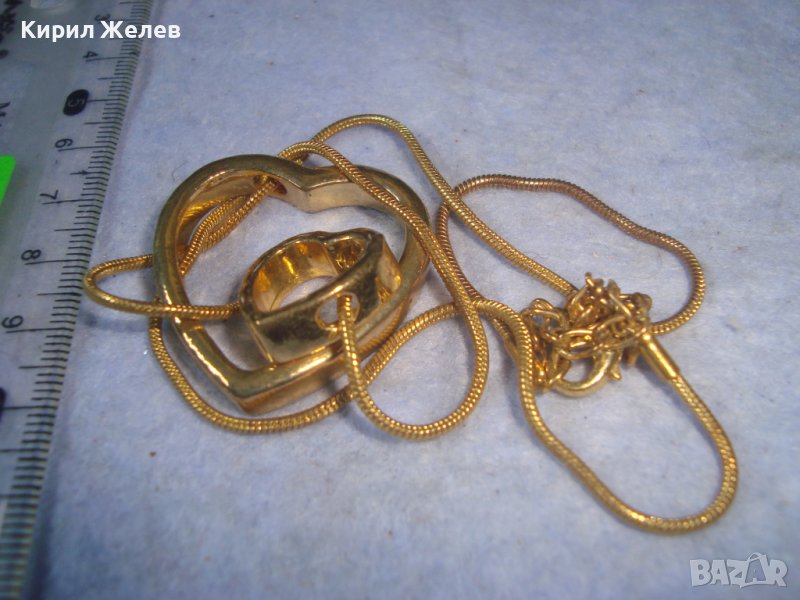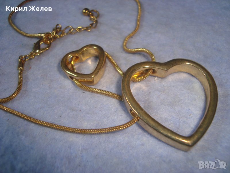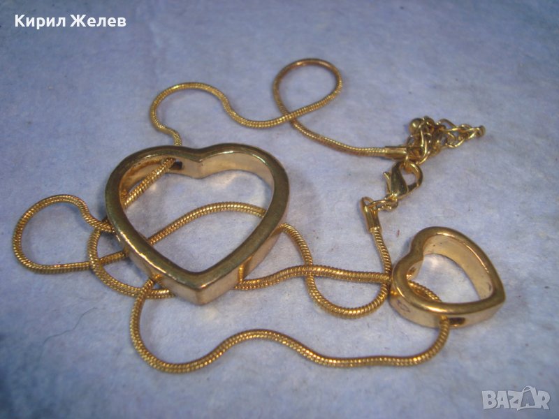 ДВЕ СЪРЦА в ЕДНО ПОЗЛАТЕН НЕЖЕН АРТ МЕДАЛЬОН КОЛИЕ с ФИНА ВЕРИЖКА 29047