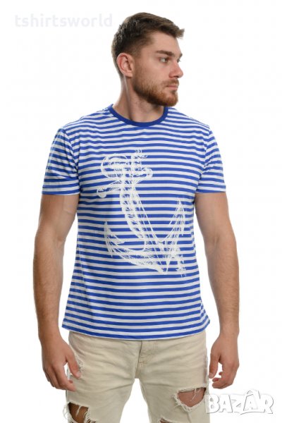 Нова мъжка класическа моряшка тениска с Голяма Котва