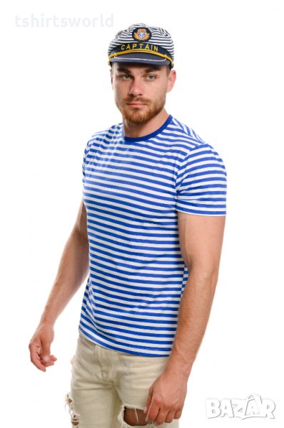 Нов мъжки моряшки комплект: моряшка класическа тениска и капитанска шапка