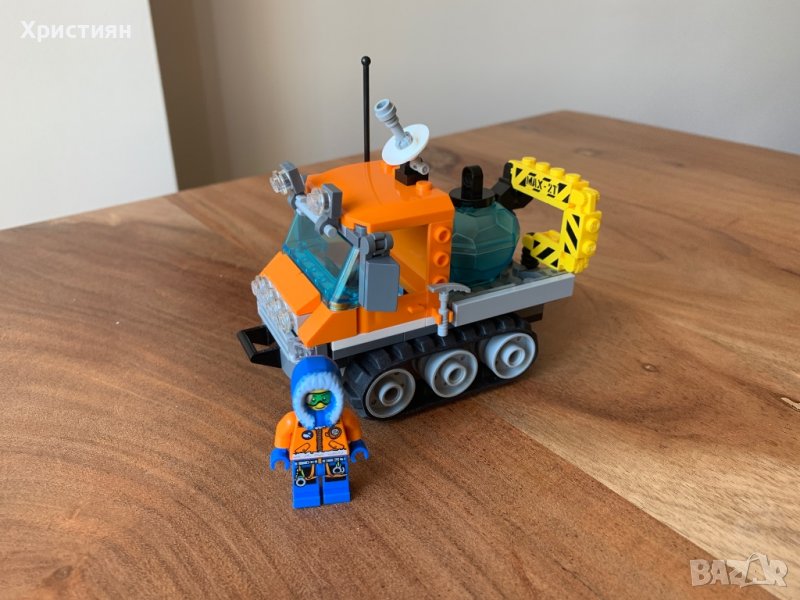 Помогнете на изследователя от Арктика, да разкрие тайните на леда с пикака и циркулярен трион. Повдигнете безопасно откритията, които сте направили върху камиона, като използвате мощен въртящ се кран. Включва мини фигурка на Arctic Explorer с разнообразни аксесоари. Разполага с кабина на водача, няколко светлини, радар, антена, въртящ се кран с тежка кука и гумени коловози. Също така включва прозрачен, син блок за лед с вдигната кука и кристал. Аксесоарите включват качулка на Arctic Explorer, циркулярен трион и пикап. Достигнете до най-отдалечените зони. Поддържайте контакт с екипа за поддръжка с антената и радара. Повдигнете ледения блок на ледогърбичката, с въртящия се кран.