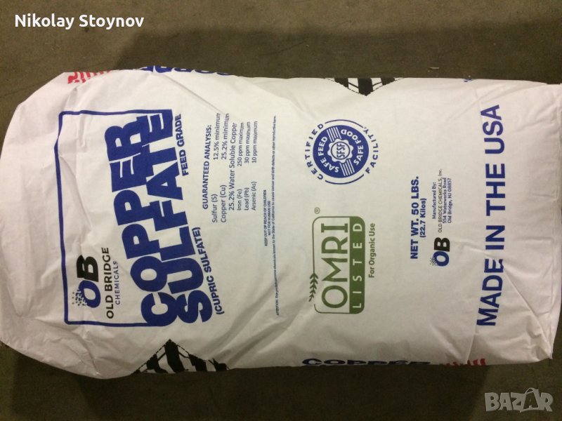 Имам удоволствоето да Ви предложа един от най-качествения меден сулфат, който може да се намери на световния пазар! Предлагания от мен син камък е производство на американската компания Old Bridge Chemicals. Old Bridge Chemicals заедно със дъщерните си компании Madison Industries и Madison Chemicals, са създадени през 1962 г и са най-големият производител на медни и цинкови съединения в Северна Америка. Обслужвайки различни индустрии, свързани с химикали, те стратегически фокусират опита и научно-развойната си дейност само върху определен брой продукти, което им позволява да предоставят изключително обслужване и постоянно качество в различни видове опаковки и размери, което клиенти им очакват и заслужават. Всички продукти на Old Bridge Chemicals се произвеждат в съоръженията им от 64 акра в Олд Бридж, Ню Джърси, САЩ. Техните корпоративни офиси и производствени помещения се намират тук, както и държавно сертифицирана лаборатория (NJ12567), която гарантира постоянно качество на продуктите. Близостта до основните транспортни центрове позволява на компанията да доставя техните продукти по целия свят по бърз и рентабилен начин, като използва независими превозвачи или камиони на клиенти. Old Bridge Chemicals доставя продукти, които са несравними по отношение на качество, чистота и наличност.