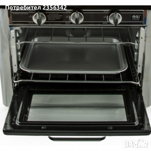 Газова фурна с котлони, подходяща за къмпинг , каравани и градини.Изработена от неръждаема стомана, дръжки за по-лесно пренасяне.Капак и ветробрани .