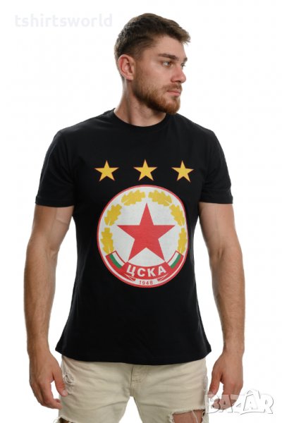 Страхотна нова черна мъжка тениска с професионално изработен висококачествен дигитален печат на футболния отбор ЦСКА (CSKA),