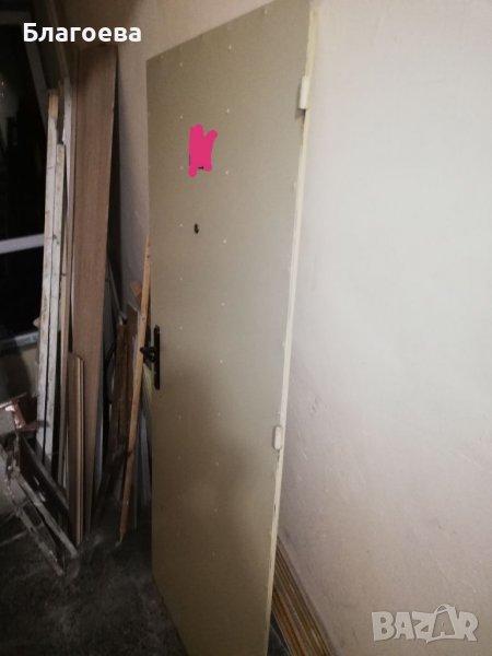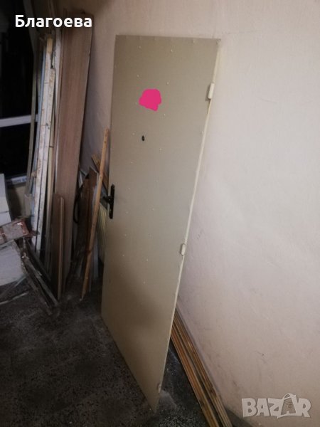Входна врата Метална. Вратата е в добро състояние с нормални следи от употреба без забележки. Вътрешен размер 80/192/4см. Външен размер 85/194/4см. Само лично предаване.