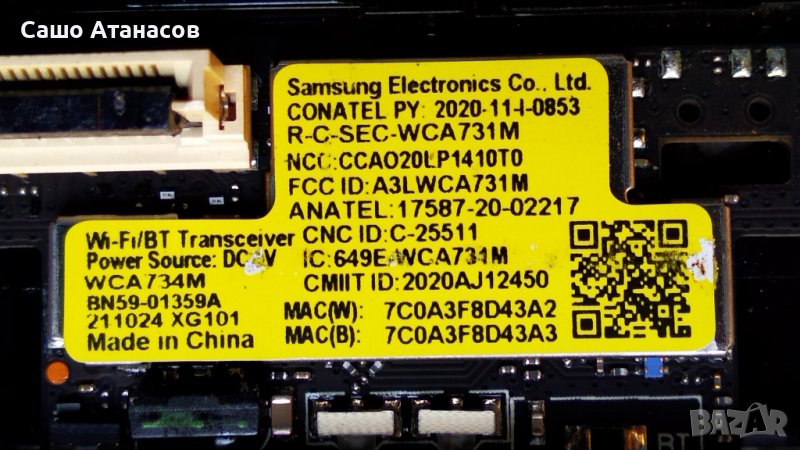 Wi-Fi/BT Transceiver / IR Board: WCA734M / BN59-01359A - 40лв.