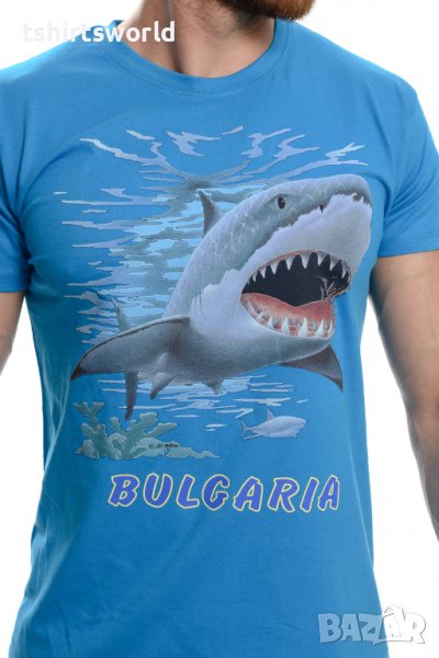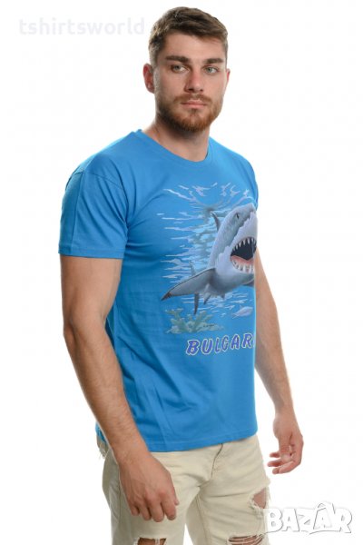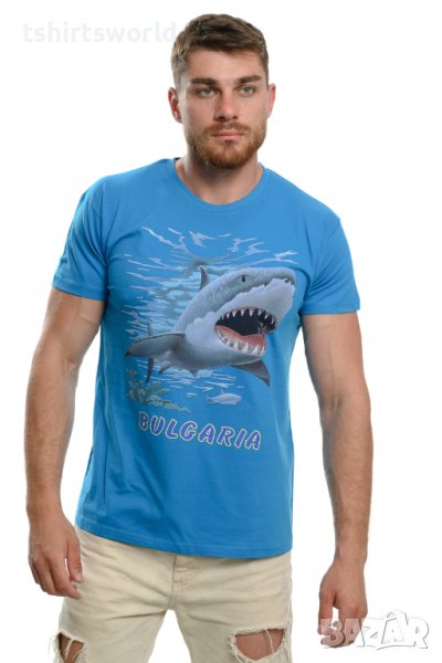 За ценителите на всичко българско и качествено представяме нашата нова страхотна свежа мъжка тениска в син цвят, напомнящ за морето и с трансферен печат Акула, България. Тениската е изработена в България под марката PRINTEX от висококачествен 100% пениран памук на 170 гр./м², който запазва цялостта на материята и наситеността на цветовете. С удобна кройка, тениската е свободна и позволява максимален комфорт при носене. Професионално изработен висококачествен трансферен печат, устойчив на пране с години. Тениската може да се пере при температура до 40 градуса. Спокойно можем да гарантираме за качеството на изработката и ярките цветове на дизайна.