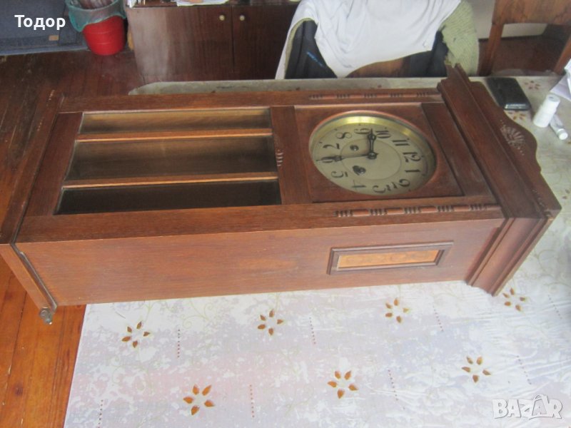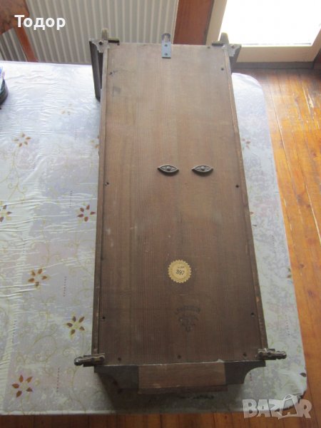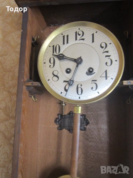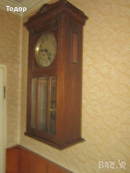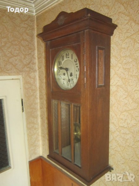Височина 80 см Ширина 32 дълбочина 18 см Диаметър на циферблата 20,5 см Многобройни и ясни маркировки и номер 397 Гонг на половин и на цял час със страхотна акустика Работи точно За 24 часа избързва 4 минути Оригинален ключ Всичко по него е оригинално Без реставраторски намеси Отлично състояние