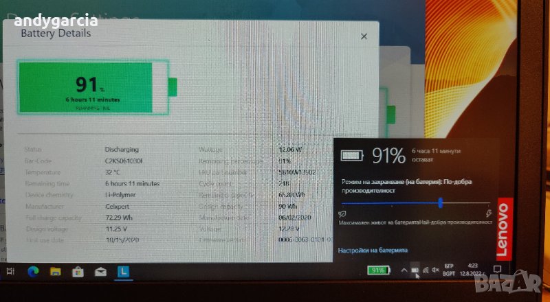- 90Wh батерия с капацитет 72Wh и издържливост до 6:00 часа...НА СНИМКИТЕ.