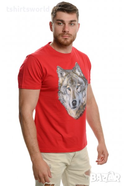 мъжка тениска с професионално изработен висококачествен трансферен печат Вълк със сини очи, Серия вълци с размер 28х37см, устойчив на пране с години. Тениската е изработена в България под марката PRINTEX от висококачествен 100% пениран памук на 170 гр./м², който запазва цялостта на материята и наситеността на цветовете дълго време. Тениската може да се пере при температура до 40 градуса. Спокойно можем да гарантираме за качеството на изработката и ярките цветове на дизайна.