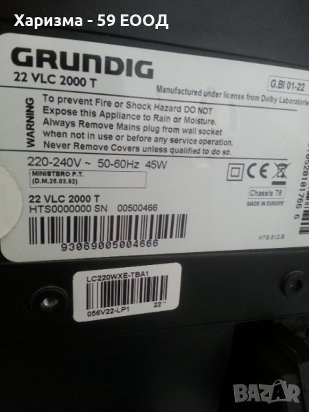Телевизор Grundig, модел 22 VLC2000T , внос от Германия, в много добро състояние и на изгодна цена. Телевизорът е проверен в сервиз и е с работещо дистанционно към него. Перфектен външен вид .