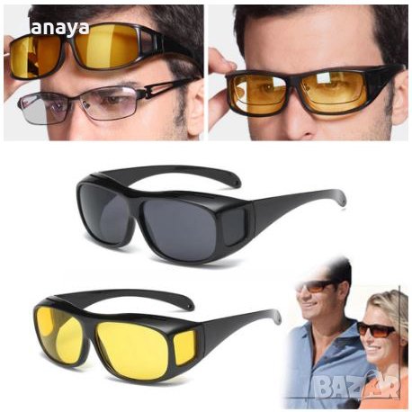Комплект очила за нощно и дневно шофиране HD Vision. 2 чифта очила за перфектна видимост на пътя. Очилата за нощно виждане подобряват визуалния комфорт по време на шофиране и допринасят за отчетливото разпознаване на обектите, за перфектна яснота през нощта. Намаляват вероятността от заслепяване, причинено от фарове и улично осветление. Подобряват видимостта при здрач и при лоши атмосферни условия. Прилягат добре, могат да се носят върху