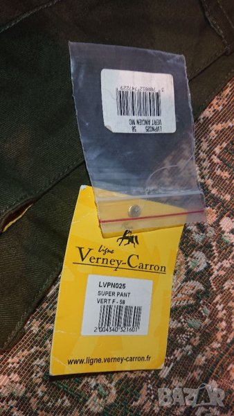 Панталонът е НОВ. Само е изпран, пазя етикета. От стоене има промяна на цвета на места. Закупен е от Англия. Размери: Дължина мерена отстрани 111см. Дължина мерена от чатала 84 см. На кръста 58 см. Verney-Carron SA е френска компания за производство на огнестрелни оръжия , базирана в Сент Етиен , Оверн-Рона-Алпи . Фирмата произвежда широка гама ловни пушки и екипировка.