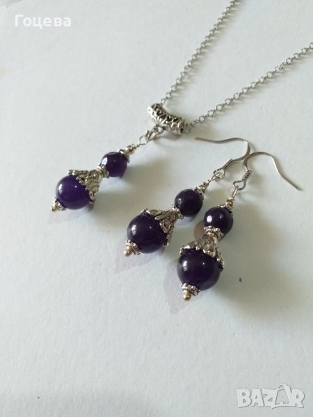 Красив комплект бижута с камъни кварц в цвят индиго и орнаменти в цвят Сребро → Обява 37676212