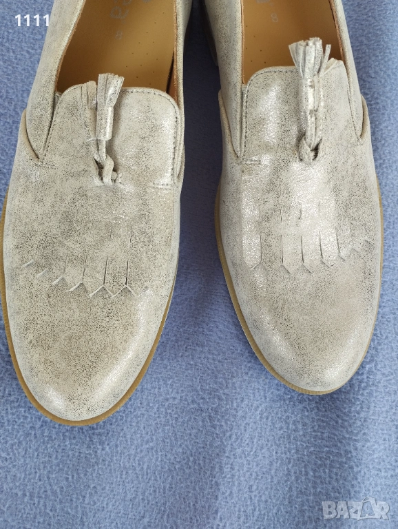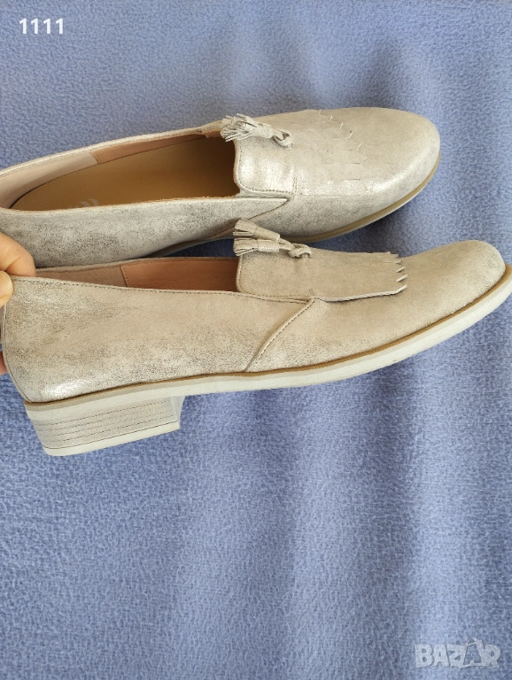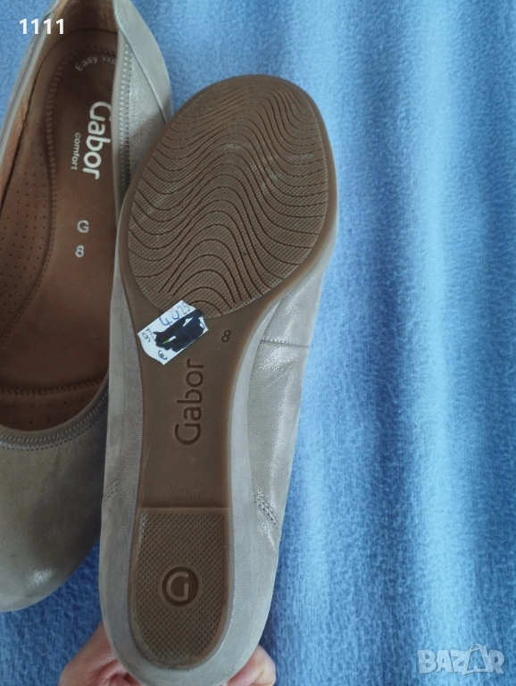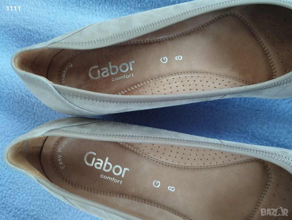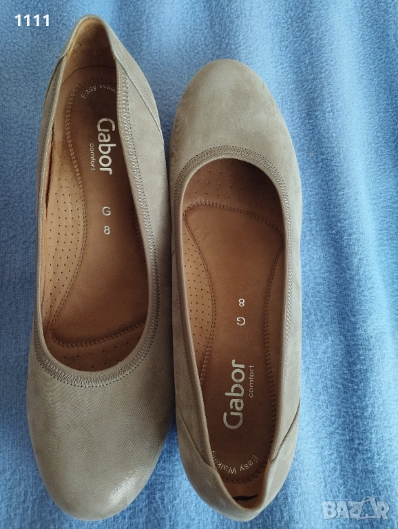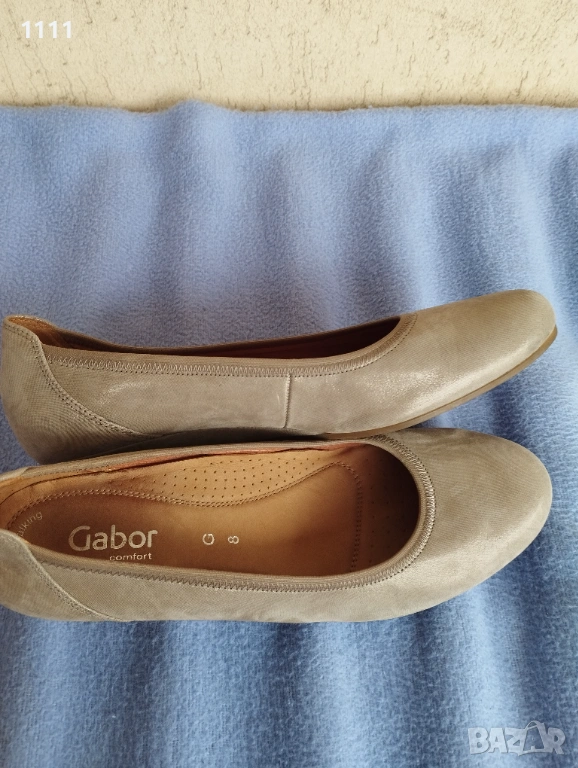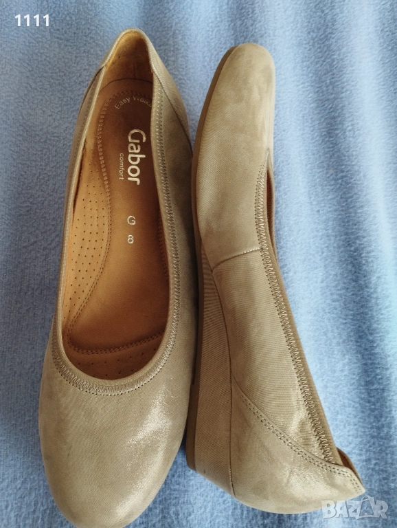 Обувките Gabor са бежов цвят със златист отенък.Мека естествена кожа.Леки и комфортни.Номер 42 с дължина на стелката 28см.Цена 50лв. Идеални за всекидневно носене и за официален повод.