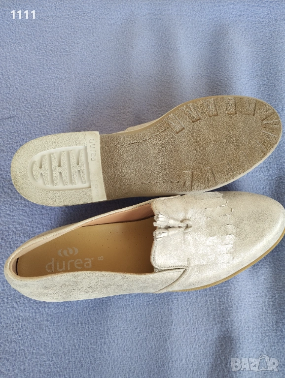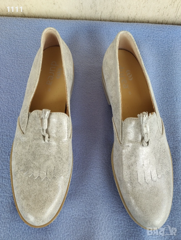 Обувките Durea са в отлично състояние, като нови са.Сребрист цвят.Естествена кожа.Удобни и комфортни.Номер 42 с дължина на стелката 28см.Цена 70лв. Марката е скъпа и качествена.