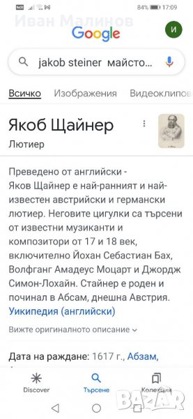 Цигулките му са едни от най добрите и ценени в днешно време. Налични маркировки а не като на късните реплики които се предлагат. Цигулката е над 200 години. За колекционери. RARE!!
