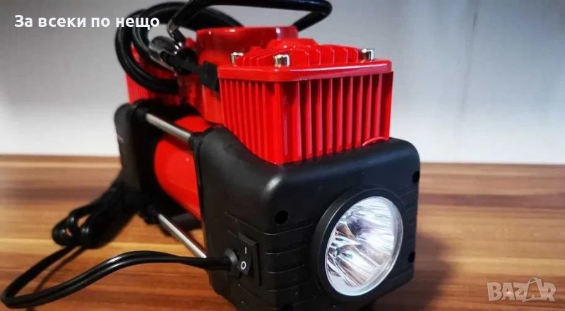 Компресор с манометър за помпане на 4х4, микробуси, ATV, камиони, автомобилни и велосипедни гуми, въздушни матраци и надуваеми принадлежности.