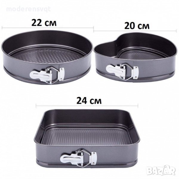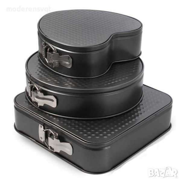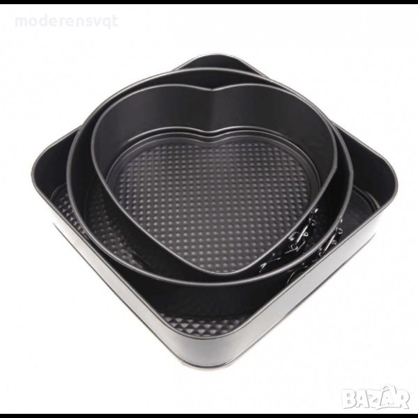 Форми за печене с падащо дъно - квадрат, кръг и сърце.