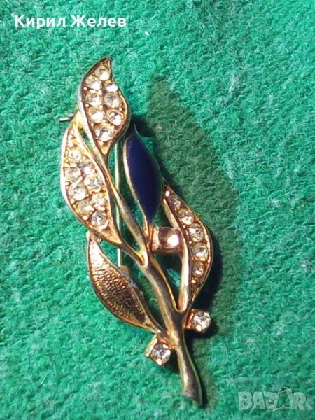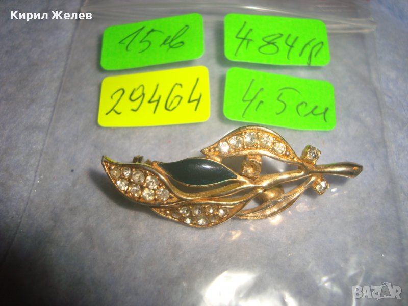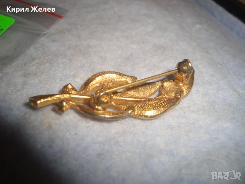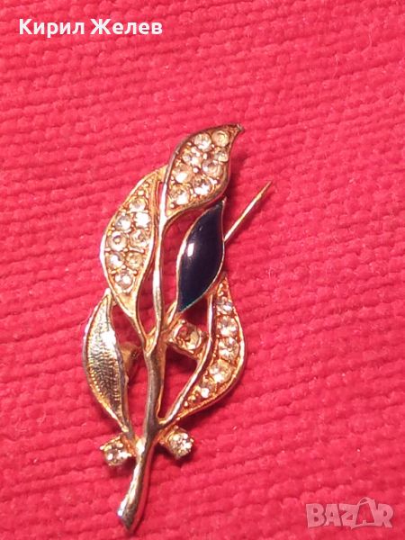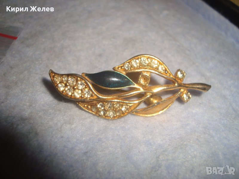 ЛИСТОВИДНА РЕТРО АРТ ФЛОРАЛНА ПОЗЛАТЕНА ЕМАЙЛИРАНА АЖУРНА БРОШКА 29464