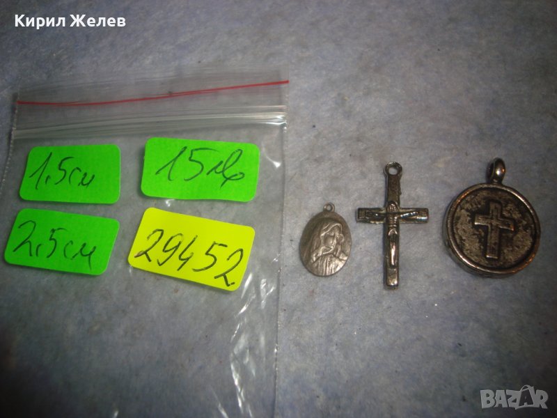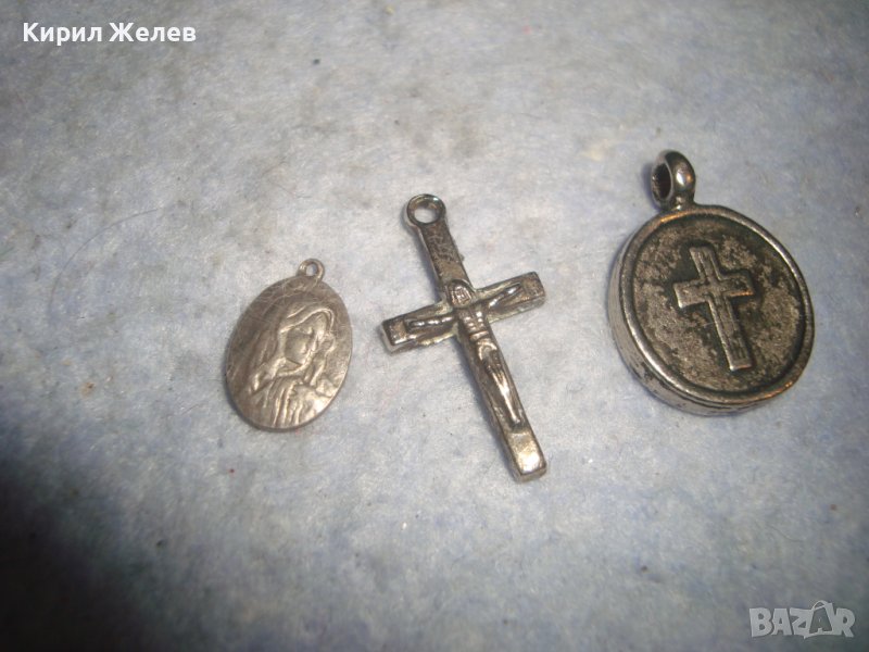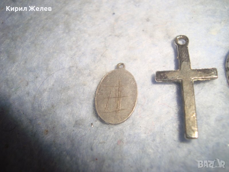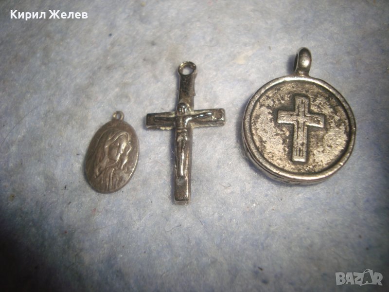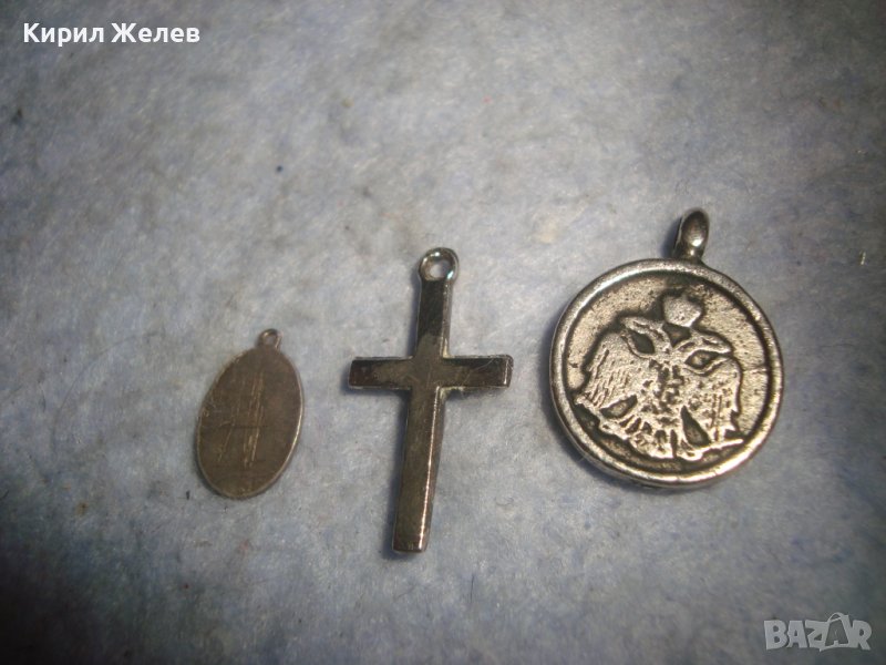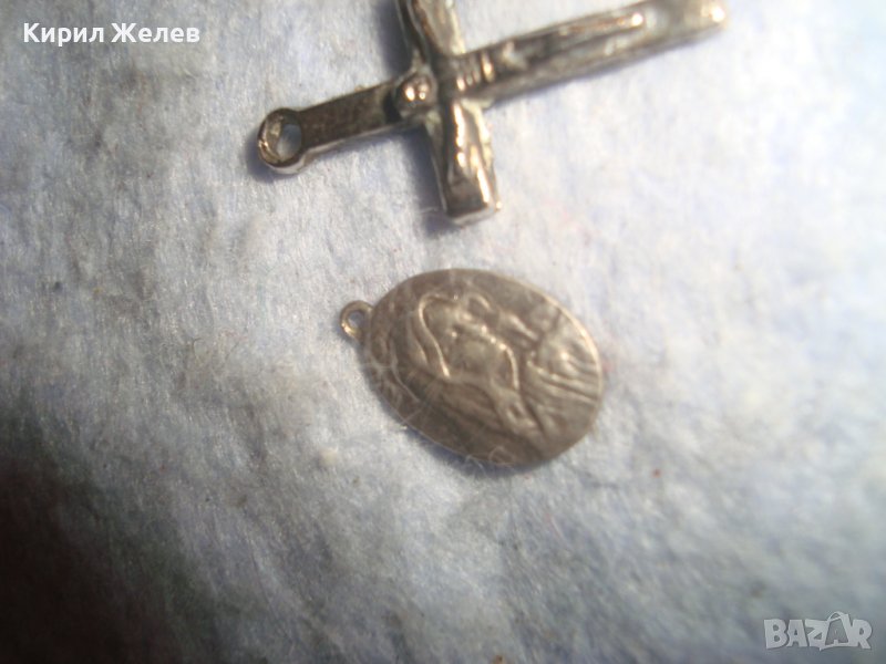 СТАРА СРЕБЪРНА КАТОЛИЧЕСКА МИНИАТЮРНА ИКОНКА и ПОСРЕБРЕНИ КРЪСТЧЕ и МЕДАЛЬОН с КРЪСТ и ГЕРБ 29452